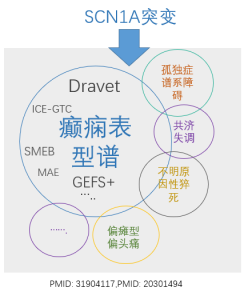 钠离子通道α1亚基蛋白基因SCN1A是单基因癫痫相关疾病最常见的致病基因。SCN1A基因相关的癫痫表型包括广泛的临床谱系,包括单纯的热性惊厥(FS)、轻度遗传性癫痫伴热性惊厥加重(GEFS+)、早发婴儿型癫痫脑病Dravet综合征、全身性强直-阵挛性发作(ICE-GTC)、重症边缘型肌阵挛癫痫(SMEB)、偏瘫型偏头痛、癫痫性猝死(suddenunexpected death in epilepsy,SUDEP)等等。